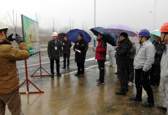 “1月20日至22日我省江淮南部和江南部分地区将有大雪到暴雪;22日至24日全省有强降温;24日至25日全省最低气温-10℃至-16℃。”日前,一则寒雪消息牵动着合肥全市各职能部门的呼吸,2016年1月22日下午,合肥市交通运输局局长方正杰、蜀山区区长葛斌一行在合肥市公路管理局副局长朱兵兵、合肥路桥公司总经理杨枫的陪同下,冒雪前往望江西路项目检查指导工作。