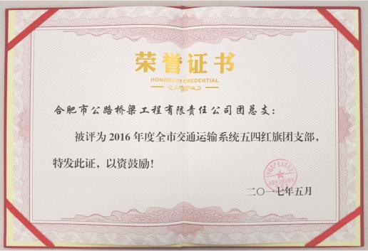 开云最新官方 > 党群廉政 > 详细新闻 近日,合肥市交通局对2016年度全系统优秀团支部进行了表彰,合肥路桥公司团支部荣获“五四红旗团支部”称号。